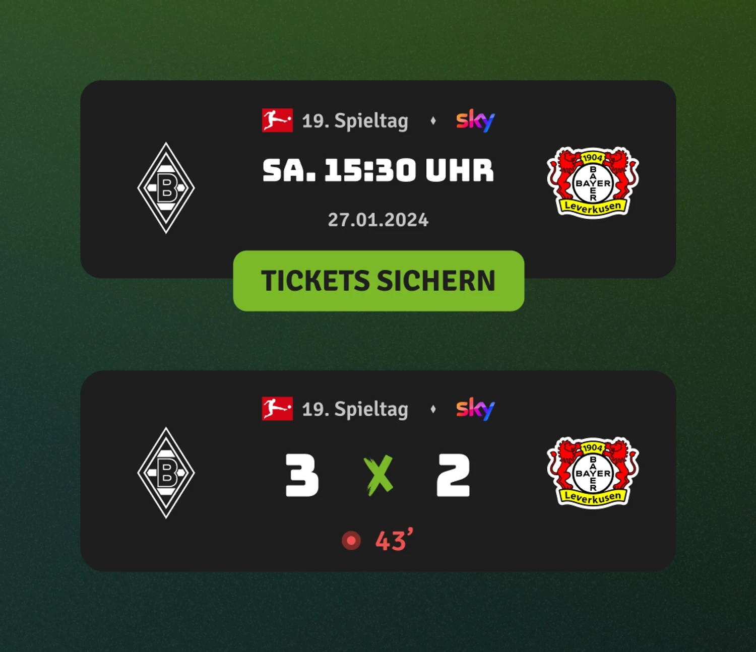 Höherer App-Traffic und Interaktion durch spieltagsrelevante Inhalte & Echtzeit-Stats – relevante Inhalte sorgen für längere Verweildauer und gezielte Aktivierung