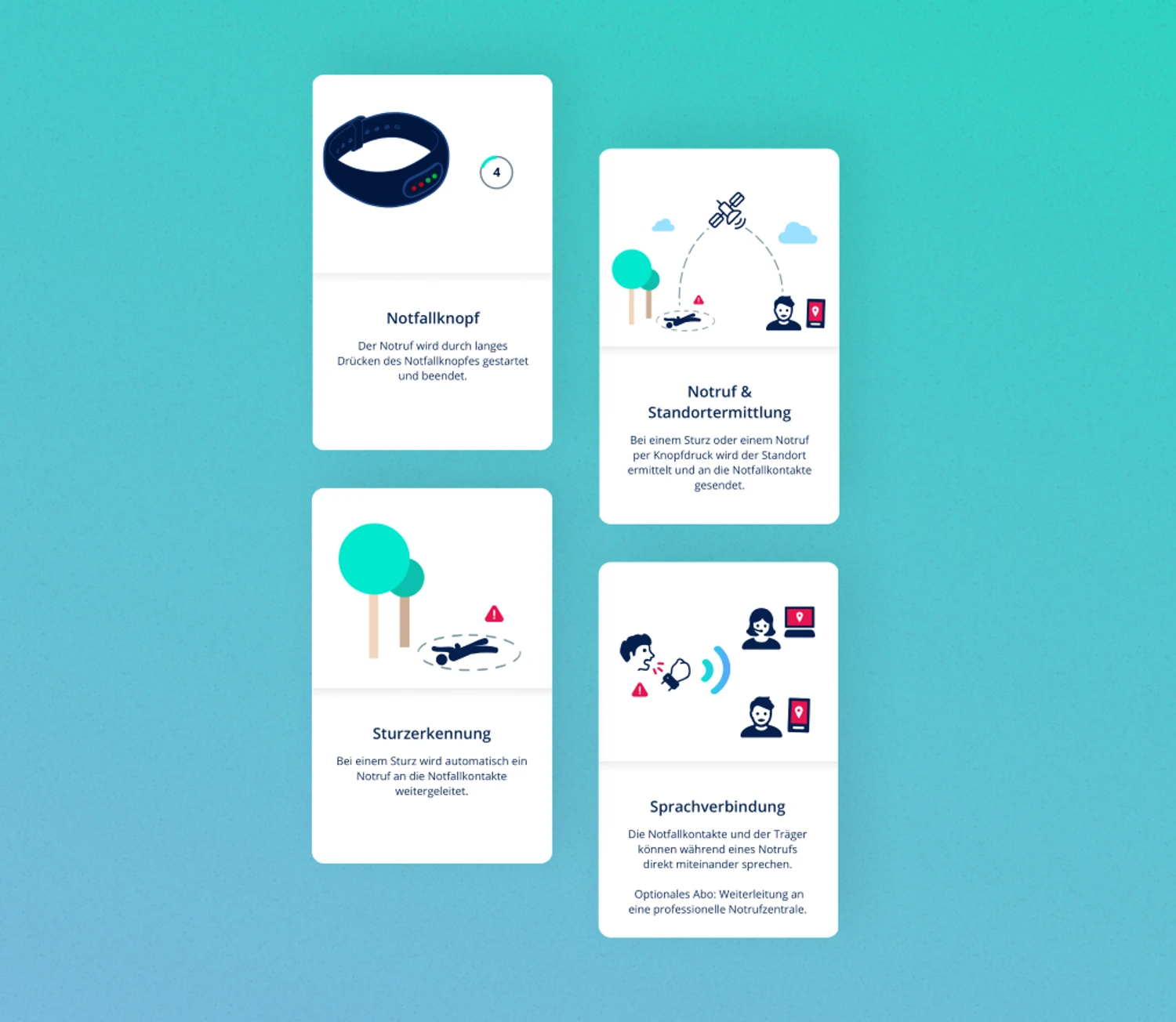 Notfälle sind Ausnahmezustände. Menschen handeln unter Angst und Zeitdruck. Das Zusammenspiel aus Armband, Notruffunktion und App musste absolut verlässlich sein. - ⌚